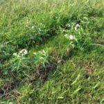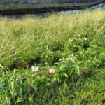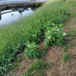笹が瀬川の堤防をウオーキング、雑草の中に白い花を見つけました、周りは草刈りをしており、わざわざ残しているようでした、
